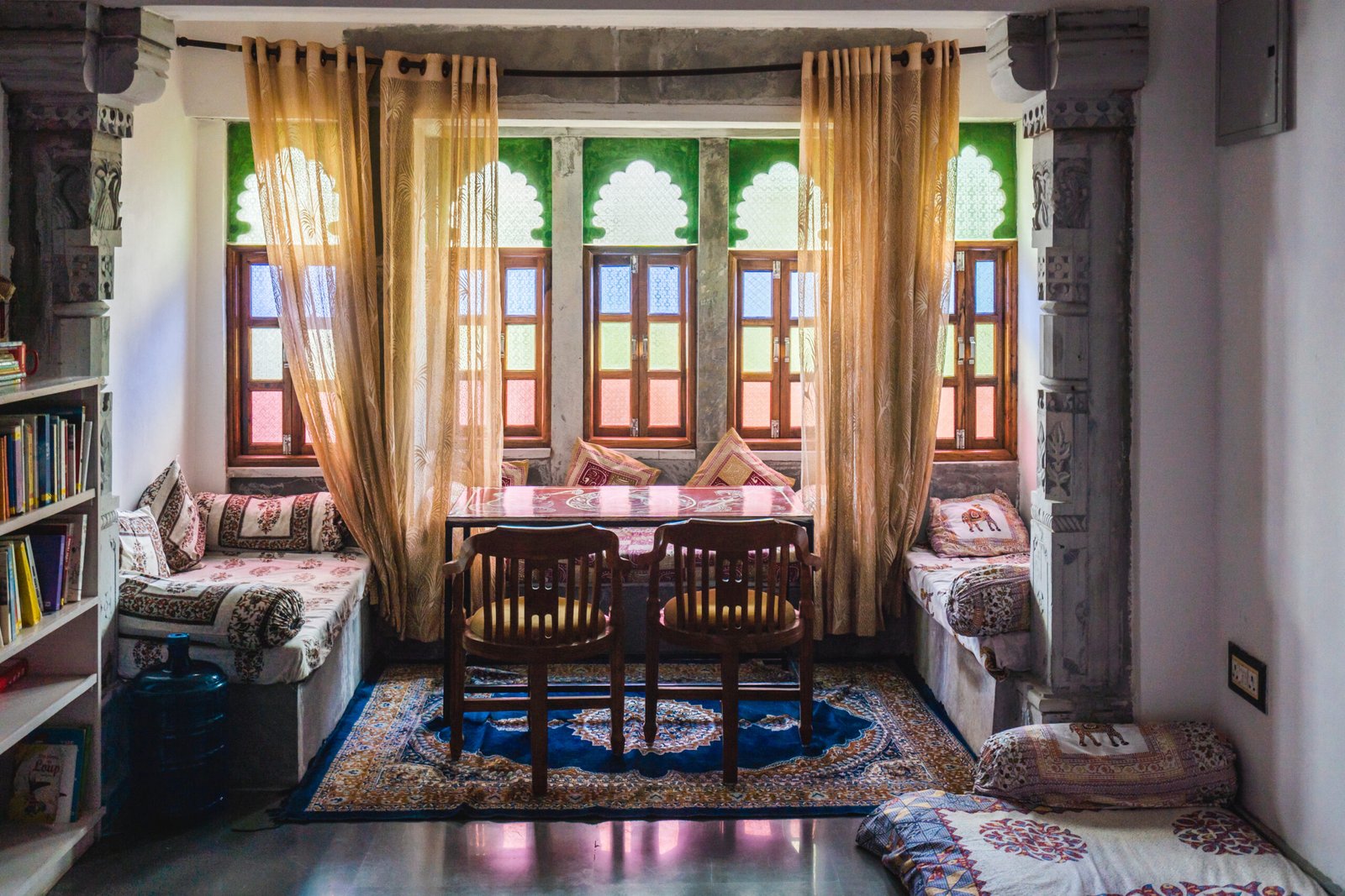 Unwind on our serene rooftop with seating areas, sun deck, and stunning views of Udaipur’s skyline. Perfect for chai, yoga, or sunsets.